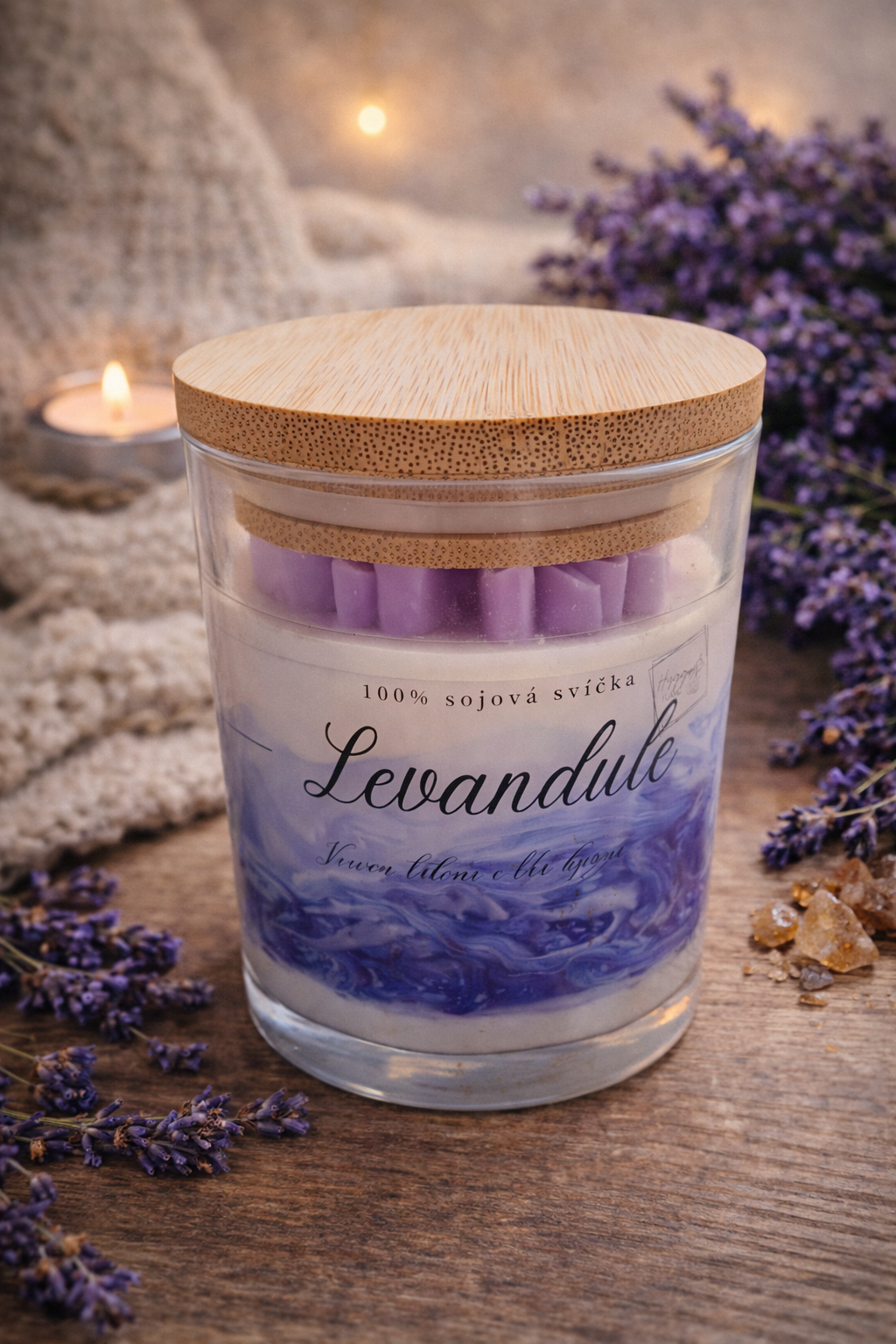 Jemná vůně levandule přináší svěží bylinné a lehce květinové tóny, které pomáhají zklidnit mysl, uvolnit napětí a vytvořit relaxační atmosféru. Ideální pro večerní odpočinek, chvíle klidu po náročném dni nebo pro vytvoření příjemné hygge nálady.