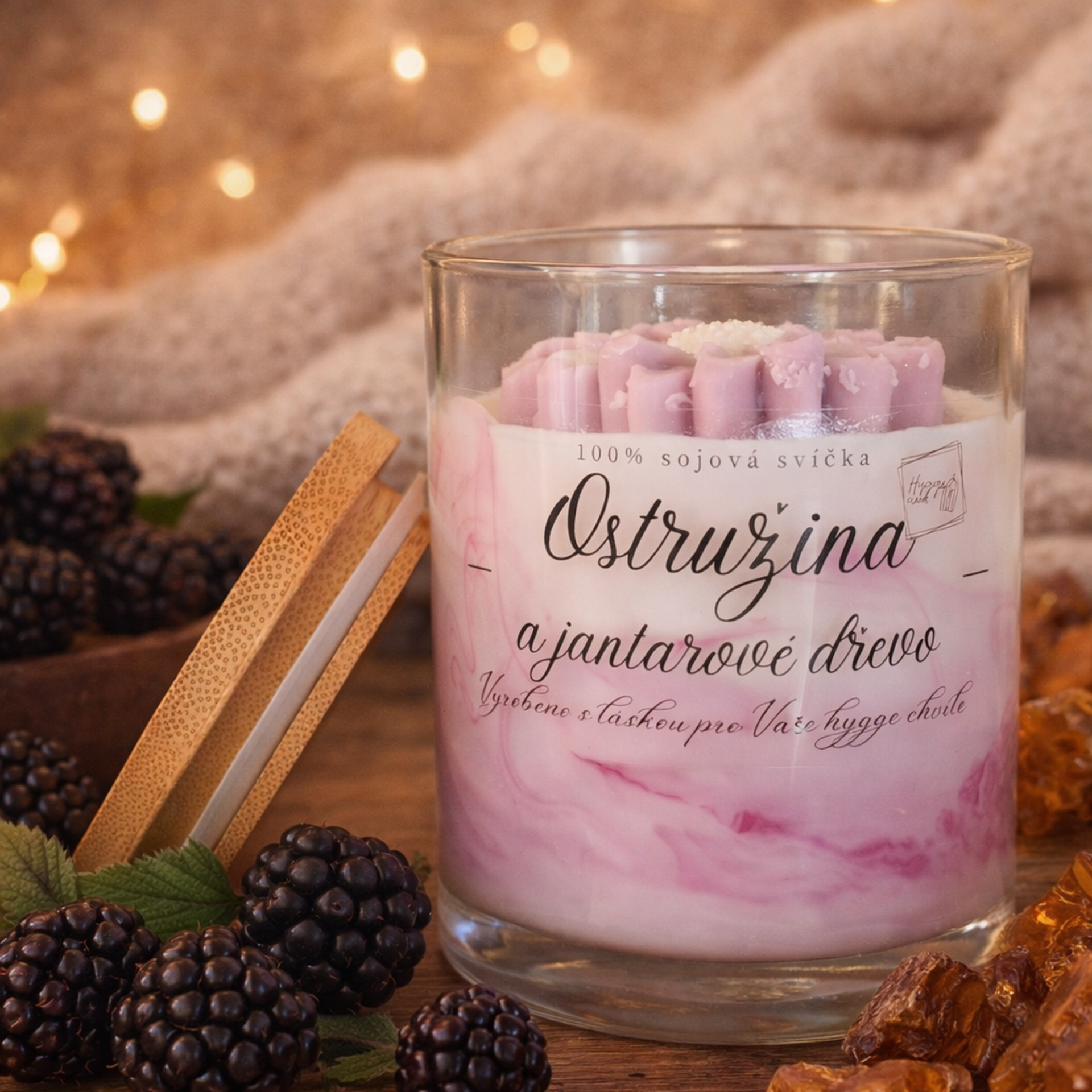 Sladké tóny šťavnatých ostružin se snoubí s hřejivým, dřevitým aroma jantaru a vytvářejí luxusní, uklidňující atmosféru.