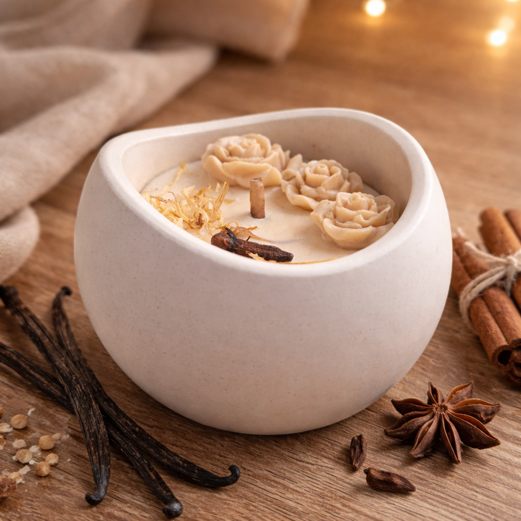 Přírodní krása, smyslná vůně a elegantní design – to vše spojuje naše ručně vyráběná sójová svíčka, která promění váš domov v útulné a hřejivé útočiště.